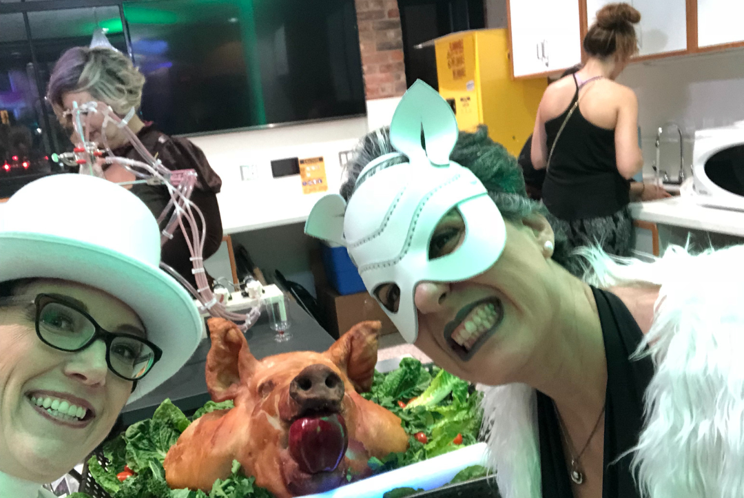 In 2018, INCUBATOR Art Lab opened a custom built Bioart laboratory in the Armouries building in the School of Creative Arts at UWindsor. This facility supports world class research and creation in molecular biology, microbiology, microscopy, and bioprinting in the production of bioart and biodesign outcomes. Situated in the main atrium of SoCA, our lab is a 435 square foot bioart lab / kitchen / gallery with a crystal chandelier and a floor to ceiling glass wall. With CFI funding, we transformed the lab in 2024 into a multimedia theatre including theatrical lighting, sound, and multimedia capabilities. This facility is a unique laboratory world-wide supporting biotech research processes in combination with a performing arts venue. Over the next 5 years INCUBATOR Art Lab researchers, visiting artists, and students will focus on producing live bioart multimedia performances and events for live and virtual audiences.